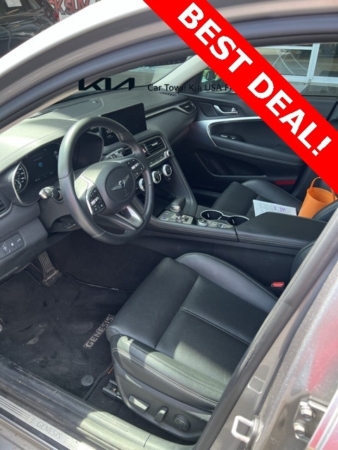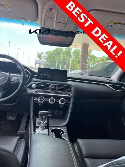 Navigation System, Option Group 01, Wheels: 19" x 8.0J Fr & 19" x 8.5J Rr Alloy, 4-Wheel Disc Brakes, 6 Speakers, ABS brakes, Air Conditioning, Alloy wheels, AM/FM radio: SiriusXM, Android Auto & Apple CarPlay, Anti-whiplash front head restraints, Auto High-beam Headlights, Auto-dimming Rear-View mirror, Automatic temperature control, Brake assist, Bumpers: body-color, Delay-off headlights, Driver door bin, Driver vanity mirror, Dual front impact airbags, Dual front side impact airbags, Electronic Stability Control, Emergency communication system: Genesis Connected Services, Exterior Parking Camera Rear, Four wheel independent suspension, Front anti-roll bar, Front Bucket Seats, Front Center Armrest, Front dual zone A/C, Front reading lights, Fully automatic headlights, Garage door transmitter: HomeLink, Heated door mirrors, Heated front seats, Heated Multi-Adjustable Front Bucket Seats, Illuminated entry, Knee airbag, Leatherette Seating Surfaces, Low tire pressure warning, Occupant sensing airbag, Outside temperature display, Overhead airbag, Overhead console, Panic alarm, Passenger door bin, Passenger vanity mirror, Power door mirrors, Power driver seat, Power passenger seat, Power steering, Power windows, Radio: AM/FM/SiriusXM/HD Audio System, Rear anti-roll bar, Rear reading lights, Rear seat center armrest, Rear window defroster, Remote keyless entry, Security system, Speed control, Speed-Sensitive Wipers, Split folding rear seat, Steering wheel mounted audio controls, Tachometer, Telescoping steering wheel, Traction control, Trip computer, Turn signal indicator mirrors, Variably intermittent wipers, Navigation System, Option Group 01, Wheels: 19" x 8.0J Fr & 19" x 8.5J Rr Alloy.