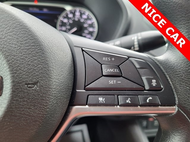 CVT with Xtronic, Charcoal Cloth, 16" Alloy Wheels, 4-Wheel Disc Brakes, 6 Speakers, ABS brakes, Air Conditioning, Alloy wheels, AM/FM radio: SiriusXM, Auto High-beam Headlights, Blind Spot Warning, Brake assist, Bumpers: body-color, Carpeted Floor Mats w/Trunk Mat, Delay-off headlights, Driver door bin, Driver vanity mirror, Dual front impact airbags, Dual front side impact airbags, Electronic Stability Control, Four wheel independent suspension, Front anti-roll bar, Front Bucket Seats, Front Center Armrest, Front reading lights, Fully automatic headlights, Illuminated entry, Knee airbag, Leather steering wheel, Low tire pressure warning, NissanConnect featuring Apple CarPlay and Android Auto, Occupant sensing airbag, Outside temperature display, Overhead airbag, Overhead console, Panic alarm, Passenger door bin, Passenger vanity mirror, Power door mirrors, Power steering, Power windows, Radio data system, Radio: AM/FM w/RDS/MP3/Aux-In, Rear anti-roll bar, Rear Parking Sensors, Rear side impact airbag, Rear window defroster, Remote keyless entry, Security system, Speed control, Speed-sensing steering, Split folding rear seat, Steering wheel mounted audio controls, Tachometer, Telescoping steering wheel, Tilt steering wheel, Traction control, Trip computer, Upgraded Cloth Seat Trim, Variably intermittent wipers, ONE OWNER, CVT with Xtronic, Charcoal Cloth.
